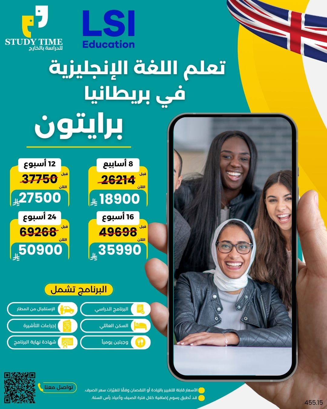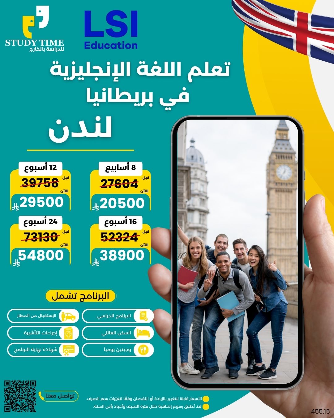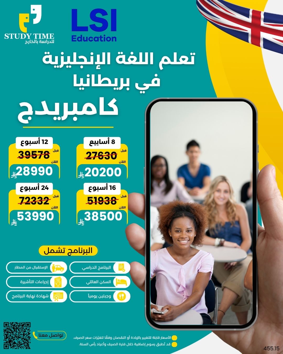 تواصل معنا واتسابالعرض شامل: الدراسة + الكتب الدراسية + السكن مع العائلة غرفة مفردة + وجبتين في اليوم + الاستقبال من أقرب مطار مجاناً+ التأشيرة الالكترونية مجاناً + شهادة معتمدة نهاية البرنامج